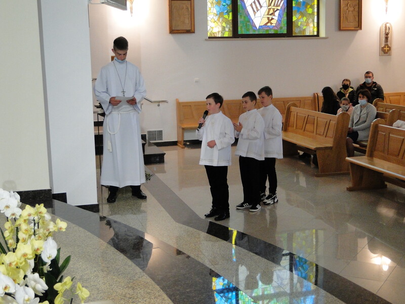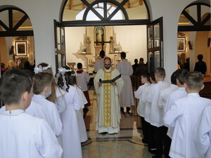 W niedzielę 30 maja w naszej parafii odbyła się Uroczystość Rocznicy Pierwszej Komunii Świętej. Dzieci z klasy IV w uroczystej Mszy Świętej pod przewodnictwem ks. Marcina dziękowały Panu Bogu za pierwszą Komunię Świętą. Z miłości do nich, rok temu, Pan Jezus po raz pierwszy dał im siebie pod postacią chleba. W darach ofiarnych, oprócz kwiatów, chleba i wina, dzieci przyniosły też książeczki z pierwszymi piątkami miesiąca. Rodzice tych dzieci i wszyscy uczestnicy Eucharystii modlili się, aby ten piękny dzień zrodził pragnienie częstego przyjmowania Pana Jezusa w Komunii Świętej.