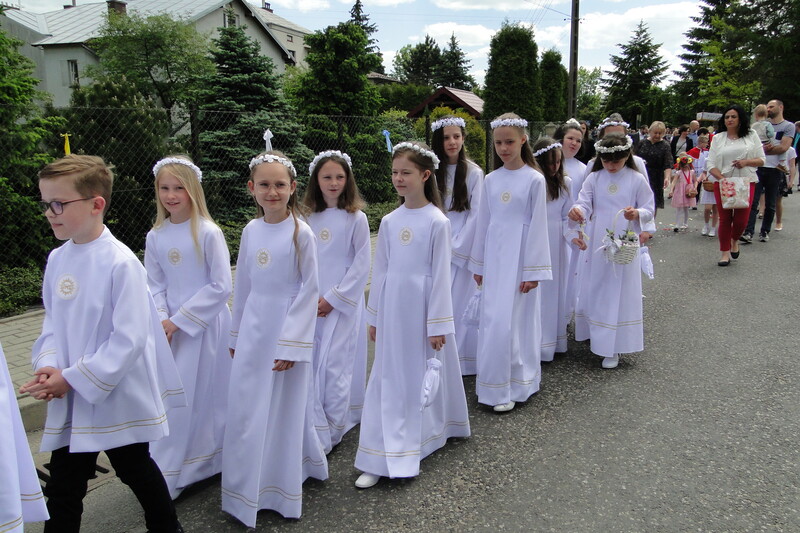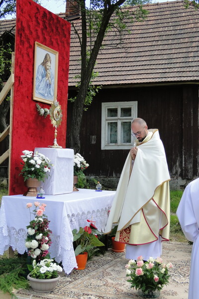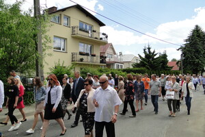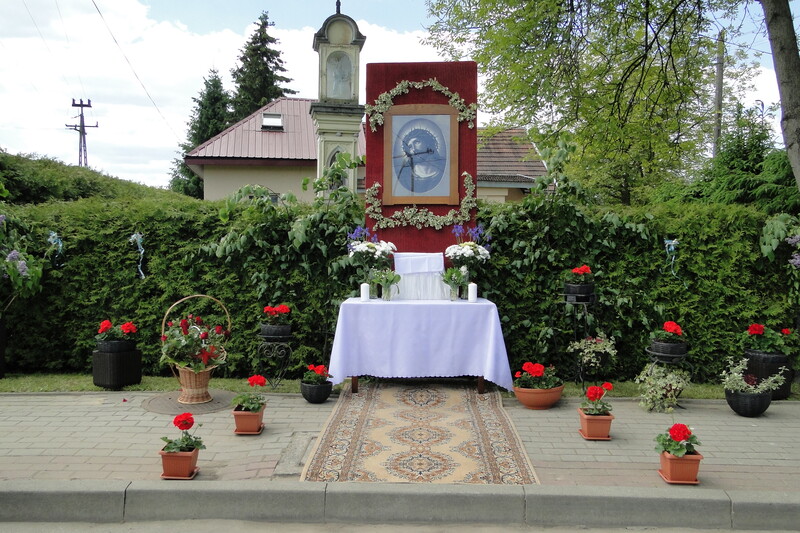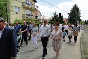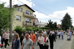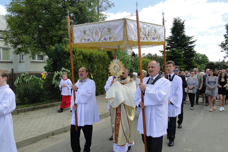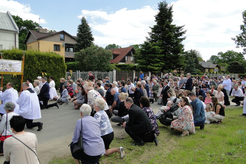 W tym roku parafialna procesja z Chrystusem Eucharystycznym odbyła się w Uroczystość Bożego Ciała - 3 czerwca. Poprzedziła ją Msza św. o godz. 10.30, koncelebrowana przez ks. Proboszcza i ks. Wikariusza. Po Mszy z kościoła wyruszył orszak z Najświętszym Sakramentem, który przeszedł ulicami Kopernika i Wierzbową. Mieszkańcy tych ulic na trasie zbudowali cztery ołtarze. Przy każdym ołtarzu wierni oddawali pokłon Najświętszemu Sakramentowi i słuchali uroczyście odśpiewanej Ewangelii. Udział w procesji wzięła spora liczba wiernych. Wśród nich wyróżniali się ministranci i lektorzy pełniący różne posługi liturgiczne, schola i harcerze niosący obraz Jezusa Miłosiernego, dzieci sypiące kwiaty, chłopcy z dzwoneczkami, dzieci w strojach komunijnych oraz panowie niosący baldachim. Procesję zabezpieczała Policja Miejska. Na zakończenie wszyscy, pod przewodnictwem pana Organisty, odśpiewali „Te Deum”, następnie ks. Proboszcz udzielił uczestnikom procesji i całej parafii błogosławieństwa Najświętszym Sakramentem.