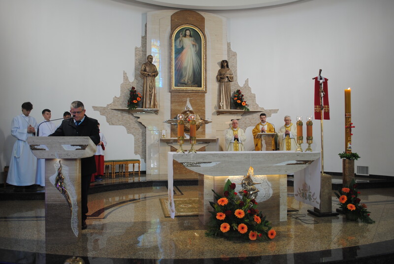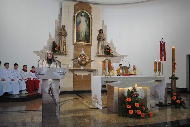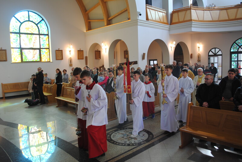 W minioną niedzielę nasza wspólnota przeżywała szczególny czas łaski – odpust parafialny ku czci Miłosierdzia Bożego. Uroczystości te były okazją do wspólnego wypraszania Bożych darów dla naszych rodzin i całego Kościoła. Głównym punktem świętowania była Suma odpustowa o godz. 12.00. Przewodniczył jej i Słowo Boże przez cały dzień głosił ks. Tomasz Biedka. Wraz z nim przy ołtarzu stanęli koncelebransi: ks. Stanisław Wójcik i ks. Proboszcz. Cieszyliśmy się również obecnością licznie przybyłych kapłanów z dekanatu oraz gości. Zwieńczeniem uroczystej liturgii była procesja z Najświętszym Sakramentem wokół kościoła. Przy pięknej, słonecznej pogodzie wspólnie wyznaliśmy naszą wiarę i wdzięczność za otrzymane łaski. Po południu, o godzinie 15.00, liczne grono czcicieli Jezusa Miłosiernego zgromadziło się ponownie, aby wziąć udział w nabożeństwie „Godzina Miłosierdzia”.