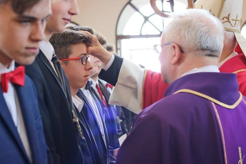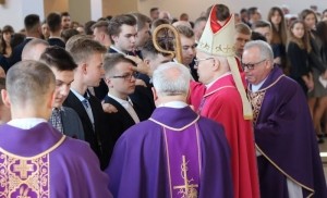 W niedzielę 31 marca o godz. 12.00 ks. abp Józef Michalik udzielił 90 osobom z Parafii Miłosierdzia Bożego i Najświętszego Serca Pana Jezusa w Krośnie sakramentu bierzmowania. Nowo bierzmowani aktywnie włączyli się w przebieg liturgii, czytając teksty liturgiczne, śpiewając psalm, niosąc dary ofiarne. Wraz z Księdzem Arcybiskupem Mszę Świętą koncelebrowali: ks. wicedziekan Tadeusz Żygłowicz, ks. proboszcz Edward Szarek i ks. Bartłomiej Zakrzewski, wikariusz z Turaszówki. Przygotowaniem młodzieży parafialnej zajął się ks. Paweł, nasz wikariusz. Nowo bierzmowanym i ich rodzicom dziękujemy za prace porządkowe, kwiaty i wystrój świątyni oraz za dar ołtarza - pozłacaną kadzielnicę, łódkę i ofiarę na cele Caritas. Bóg zapłać!