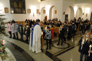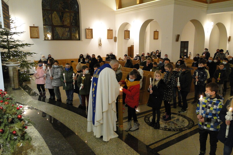 Czterdzieści dni po Bożym Narodzeniu, 2 lutego, w liturgii obchodzimy pamiątkę ofiarowania Pana Jezusa w świątyni jerozolimskiej. Świece, które w tym dniu zapalamy i święcimy są właśnie nawiązaniem do tej prawdy, że Jezus jest Światłością świata. Dzieci, które przygotowują się w tym roku do zjednoczenia z Jezusem w Komunii św. w Święto Ofiarowania Pańskiego dziękowały Bogu za przyjęty chrzest i wyraziły swoją wolę przyjęcia Jezusa. Dlatego w tym dniu, z zapalonymi świecami w dłoniach, odnowiły przyrzeczenia chrztu św., wyrzekając się grzechu i wyznając wiarę. To ważny moment w drodze ku Eucharystii, którą poprzedzi sakrament pokuty.