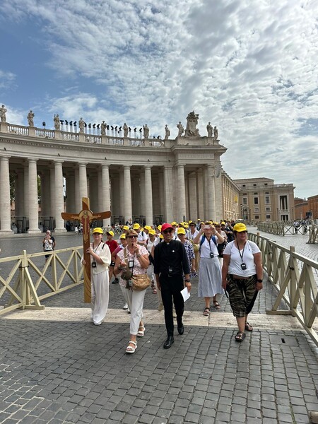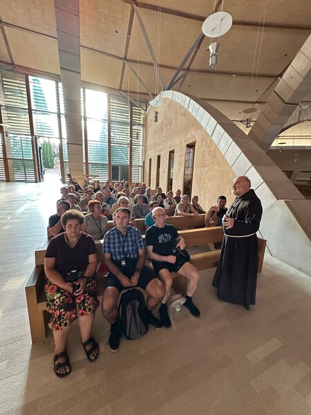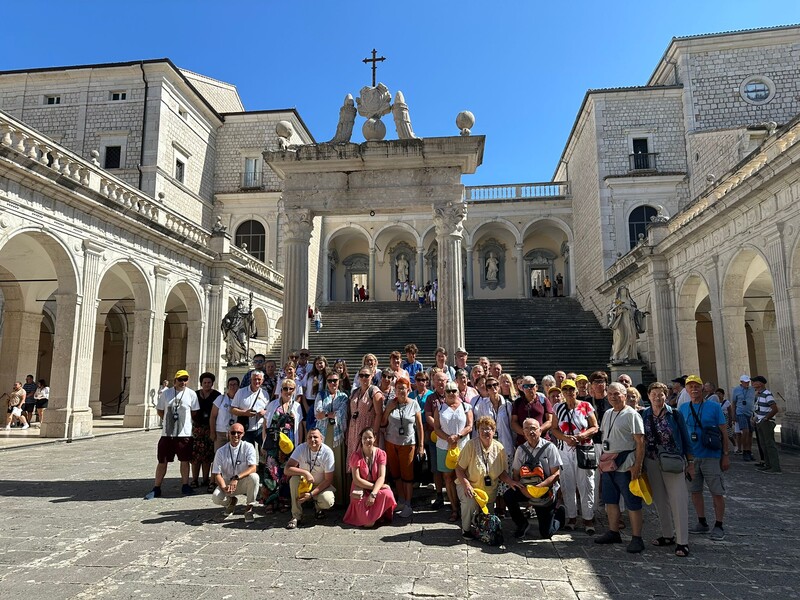 W dniach od 6 do 14 września 2025 roku, 58-osobowa grupa pielgrzymów z Krosna wyruszyła w duchową podróż do Włoch, odwiedzając miejsca o wyjątkowym znaczeniu religijnym, historycznym i kulturowym. Pielgrzymka była czasem modlitwy, refleksji, wspólnoty i zachwytu nad pięknem chrześcijańskiego dziedzictwa. Rozpoczęła się od nawiedzenia Asyżu – miasta św. Franciszka i św. Klary. Spacerując po urokliwych uliczkach, pielgrzymi nawiedzili Bazylikę św. Franciszka, gdzie modlili się przy jego grobie. Atmosfera ciszy i pokoju sprzyjała duchowemu skupieniu. Kolejnym przystankiem na trasie pielgrzymki był Rzym – Wieczne Miasto. Pierwszym punktem duchowej wędrówki było uroczyste przejście przez Drzwi Święte oraz nawiedzenie Bazyliki św. Piotra, katakumb św. Kaliksta oraz innych ważnych miejsc: Bazyliki św. Jana na Lateranie, Bazyliki Matki Bożej Większej oraz Bazyliki św. Pawła za Murami. Poza miejscami kultu na trasie pielgrzymki znalazły się także takie zabytki Rzymu jak: Panteon, Fontanna di Trevi, schody Hiszpańskie, Koloseum, Forum Romanum, Ołtarz Ojczyzny i Kapitol. W Monte Cassino pielgrzymi zwiedzili Opactwo Benedyktynów oraz oddali hołd poległym żołnierzom, nawiedzając Polski Cmentarz Wojenny, gdzie została odprawiona Msza św. w intencji Ojczyzny i poległych w jej obronie. To miejsce skłaniało do refleksji nad ofiarą życia i siłą wiary w najtrudniejszych momentach historii. Dalsza droga skierowana była do San Giovanni Rotondo gdzie znajduje się sanktuarium św. Ojca Pio. Modlitwa przy jego grobie, zwiedzanie muzeum oraz uczestnictwo w Eucharystii były dla pielgrzymów momentem głębokiego wzruszenia i duchowego umocnienia. Kolejnego dnia pątnicy udali się do Sanktuarium św. Michała Archanioła w Gargano – jednego z najstarszych miejsc kultu tego potężnego patrona. Grota, w której według tradycji objawił się św. Michał, emanuje niezwykłą siłą i spokojem. Ostatnim punktem pielgrzymki była Padwa oraz nawiedzenie Bazyliki św. Antoniego. Modlitwa przy jego grobie była pięknym zwieńczeniem podróży. Spacer po mieście pozwolił pielgrzymom podziwiać piękno architektury i atmosferę tego miasta. Pielgrzymka była nie tylko podróżą geograficzną, ale przede wszystkim duchową. Każde nawiedzone miejsce pozostawiło ślad w sercu uczestników. Wspólna modlitwa, śpiew, rozmowy i chwile ciszy zbliżyły nas do Boga i do siebie nawzajem. Dziękujemy wszystkim uczestnikom za wspólne przeżycia. Niech owoce tej pielgrzymki trwają w nas jak najdłużej!