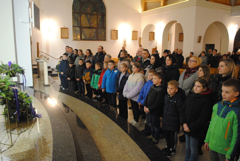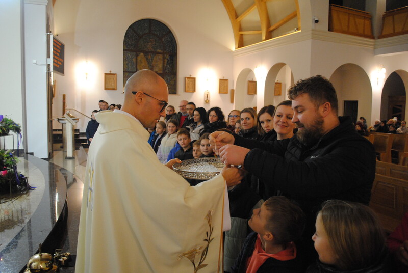 W sobotę, 8 grudnia, w Uroczystość Niepokalanego Poczęcia Najświętszej Maryi Panny, nasza wspólnota parafialna przeżyła piękne chwile. Podczas wieczornej Mszy Świętej o godzinie 18.00, dzieci przygotowujące się do przyjęcia Pierwszej Komunii Świętej uczyniły kolejny ważny krok na swojej drodze wiary. Ksiądz Marcin pobłogosławił medaliki z wizerunkiem Niepokalanej, które mają przypominać najmłodszym o nieustannej opiece Matki Bożej. Najbardziej poruszającym momentem był gest samych rodziców, którzy z miłością nałożyli poświęcone medaliki na szyje swoich dzieci. To symboliczne oddanie pod opiekę Maryi na zawsze pozostanie w sercach małych kandydatów do sakramentu.