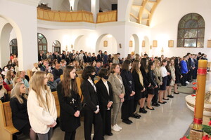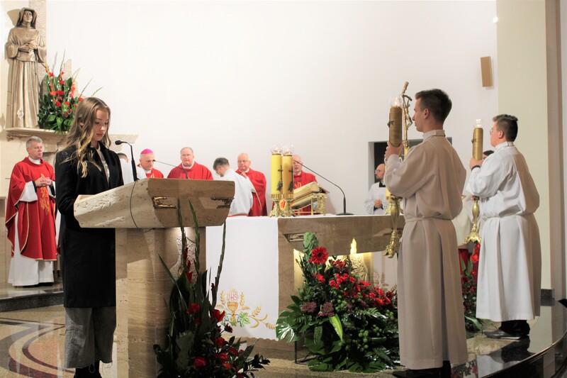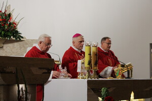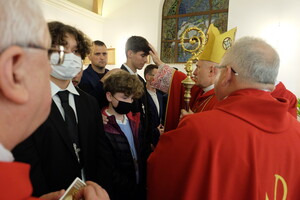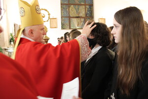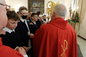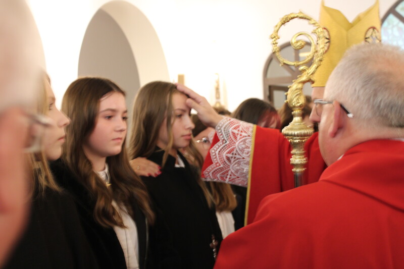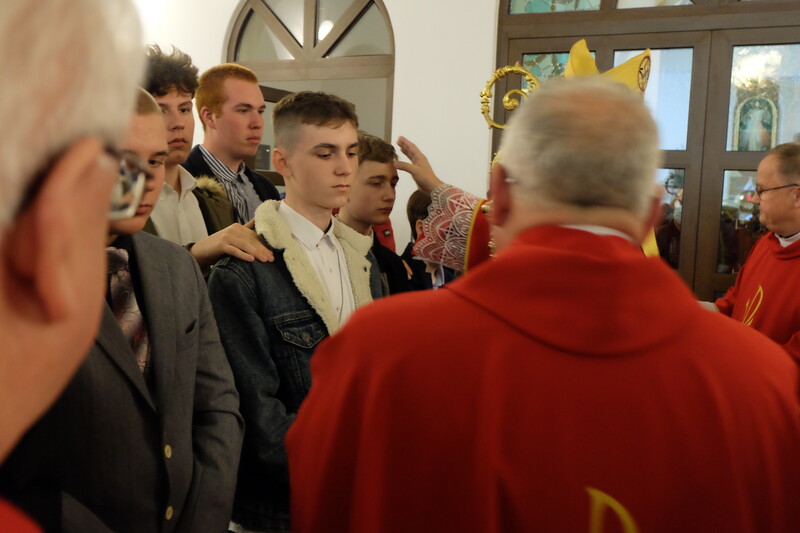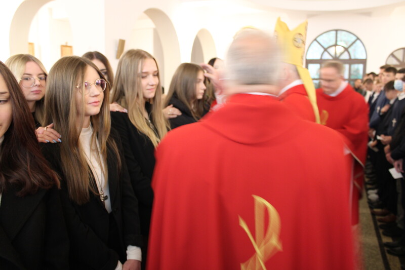 W środę, 13 października, w naszej Parafii odbyła się wizytacja kanoniczna, której dokonał Ks. Biskup Stanisław Jamrozek. Wcześniej przedstawiciele wydziałów Kurii Metropolitalnej podsumowali duszpasterstwo, sprawy ekonomiczne, budowlane i stan techniczny budynków kościelnych. Ks. Biskup przybył do nas w godzinach porannych, rozmawiał z kapłanami pracującymi w naszej Parafii, złożył wizytę w Szkole Podstawowej Nr 3, odwiedził rodzinę chorej osoby, a o godz. 17.30 został powitany w naszej świątyni. Po powitaniu przez delegację rodziców i sprawozdaniu ks. Proboszcza rozpoczęła się uroczysta Eucharystia, w czasie której młodzież z klasy VIII i I ponadpodstawowej przyjęła Sakrament Bierzmowania. Na zakończenie Mszy św. ks. Biskup poświęcił nowe witraże, wysłuchał prezentacji grup parafialnych oraz udzielił pasterskiego błogosławieństwa.