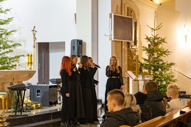 W uroczystość Objawienia Pańskiego, 6 stycznia, mury naszej świątyni wypełniły się wyjątkową modlitwą płynącą z serc i instrumentów. Już po raz kolejny mieliśmy zaszczyt gościć młodych artystów ze Studia Wokalno-Instrumentalnego Krzysztof Zajdel podczas tradycyjnego koncertu kolęd i pastorałek. Piękny śpiew młodych wykonawców stał się dla nas wszystkich okazją do wspólnego świętowania w duchu wiary i artystycznych wzruszeń. Z całego serca dziękujemy młodym artystom za ich trud, pasję i odwagę w dzieleniu się talentem. Słowa wdzięczności kierujemy również do Pana Krzysztofa Zajdla oraz wszystkich osób zaangażowanych w organizację tego przedsięwzięcia.