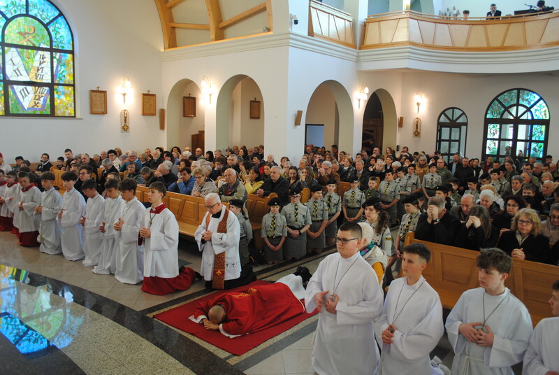 W Wielki Piątek nasza wspólnota parafialna zgromadziła się na uroczystej Liturgii Męki Pańskiej, której przewodniczył ks. Marcin. To jedyny dzień w roku, kiedy nie sprawuje się Mszy świętej, a cały świat trwa w ciszy u stóp Krzyża.