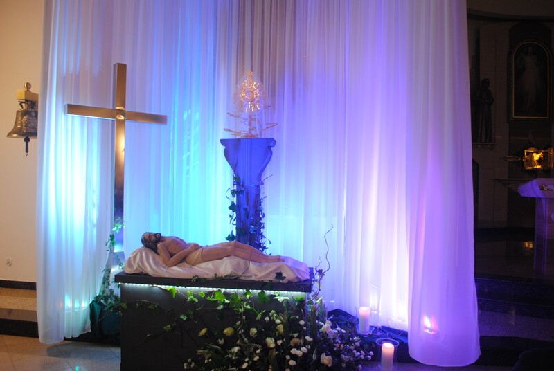 Procesja do Grobu Pańskiego: Na zakończenie Najświętszy Sakrament został uroczyście przeniesiony do przygotowanego Grobu Pańskiego, gdzie rozpoczęło się modlitewne czuwanie.
