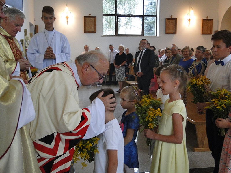 15 sierpnia br., wraz z całym Kościołem, obchodziliśmy uroczystość Wniebowzięcia NMP. W naszej parafii, świętującej 24 „narodziny”, przeżywaliśmy jubileusz 50-lecia kapłaństwa Księdza Prałata Karola Brysia, pierwszego proboszcza. Dziękczynnej Eucharystii przewodniczył Dostojny Ksiądz Jubilat, a celebransami byli: ks. prał. Julian Bieleń, który wygłosił okolicznościową homilię, ks. Adam Chochołek, ks. Kazimierz Piwowar i ks. proboszcz Edward Szarek. Na zakończenie Ksiądz Jubilat poświęcił przyniesione przez wiernych wiązanki ziół i kwiatów oraz wieniec dożynkowy. Następnie ks. proboszcz i liczne delegacje parafii, szkoły i dzielnicy złożyły Księdzu Jubilatowi najserdeczniejsze życzenia, a także i podziękowania za 8-letnią pracę w białobrzeskiej parafii. Uroczystość zakończyła się tradycyjnym poczęstunkiem kołaczykami, przygotowanymi przez białobrzeskie gospodynie. Zaszczytną rolę gospodarzy tegorocznych dożynek pełnili p. Zofia Indyk i p. Stanisław Wróbel. Uroczystość uświetniła Kapela Białobrzeżanie.